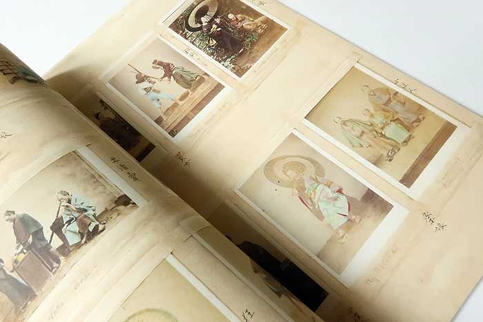 Welcart カテゴリー日本写真の先駆者・下岡蓮杖(1823-1914)の未発表名刺判(carte-de-visite)作品144点を収めた復刻アルバム。1865年-1868年頃に制作されたこの写真群は、元の所有者が真鍮製の留め具で簡易バインドした14枚の紙に6点ずつ貼ってまとめられており、手書きの日本語と英語キャプションが付されている。内容は、侍、職人、女性、宗教者、相撲取りなど多様な当時の人々や風俗を描写しており、幕末から明治への社会変容や下岡の写真スタジオ運営の実態を知るうえで貴重な史料。