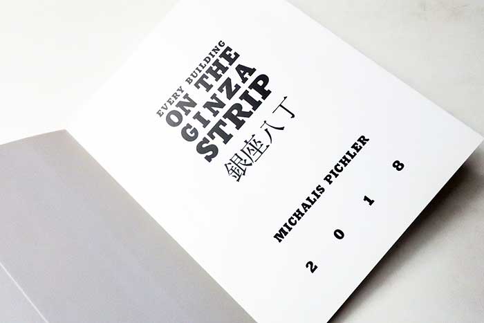 Welcart カテゴリー1954年に木村荘八/鈴木芳一が銀座通りの全建物を写真で記録した蛇腹折り本「銀座八丁」と、1966年発行になるエド・ルシェの「Every Building on the Sunset Strip」の形式に着想を得た、ミカリス・ピヒラーの現代版アーティストブック。通りに建つすべての建物を車窓から撮影し、番地や交差点の情報を添えた全長約4メートルの白黒パノラマ写真をアコーディオン装丁で構成。ミカリス・ピヒラーはドイツ拠点に活動にするギリシャ人アーティスト。
